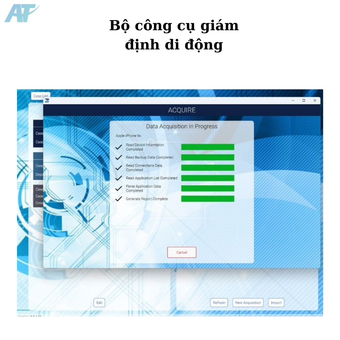 - Bộ công cụ bao gồm thiết bị cầm tay trích xuất nhanh dữ liệu tại hiện trường, hỗ trợ màn hình hiển thị và tích hợp phần mềm pháp y mạnh mẽ cho phép điều tra sâu, có thể chạy trên nhiều thiết bị di động và kỹ thuật số.