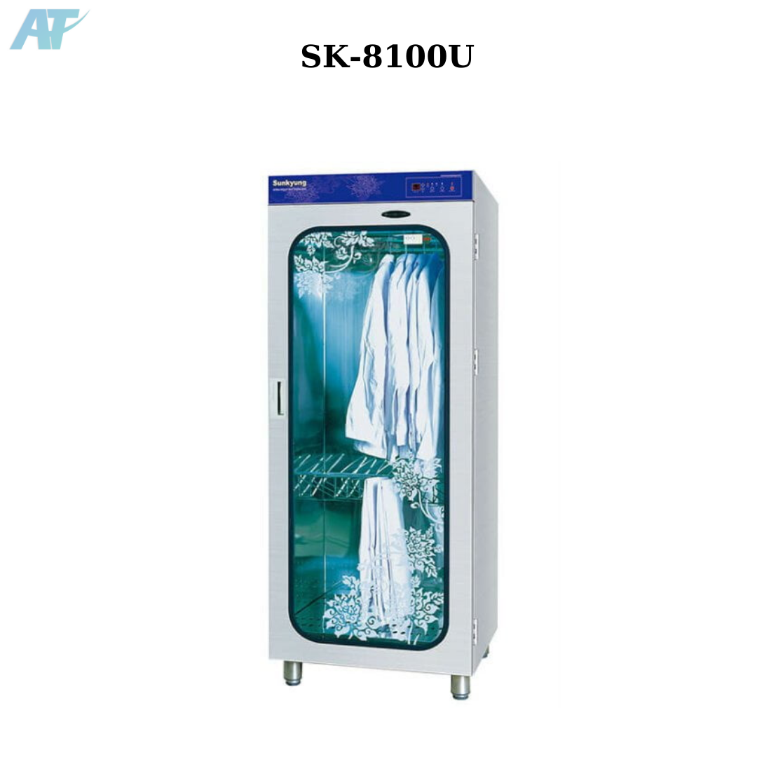 | SK-8100U | 700 x 600 x 1900mm | 100 ~ 230V, 50 ~ 60Hz | 1450W | 53kg | 3 x 15W | 12 bộ quần áo |